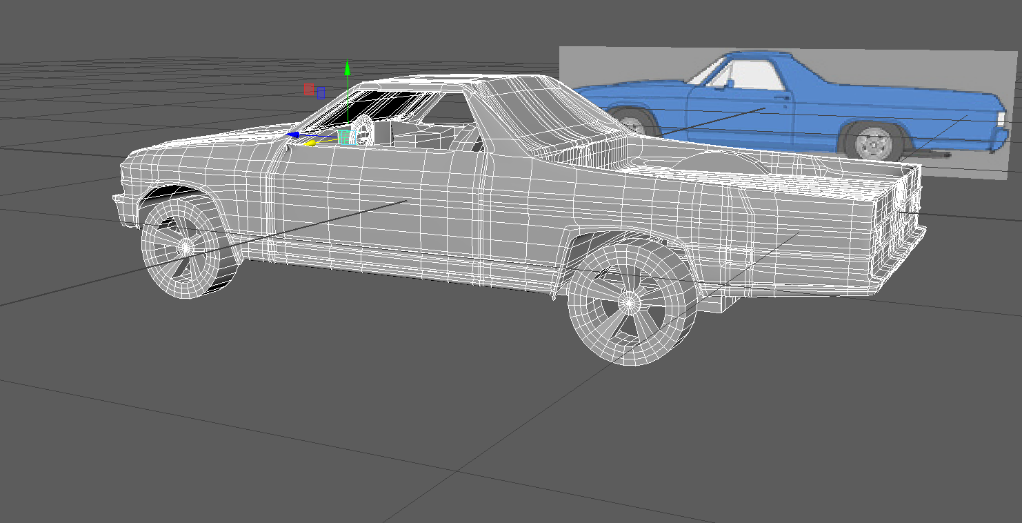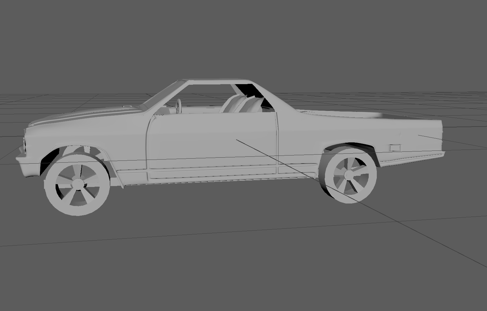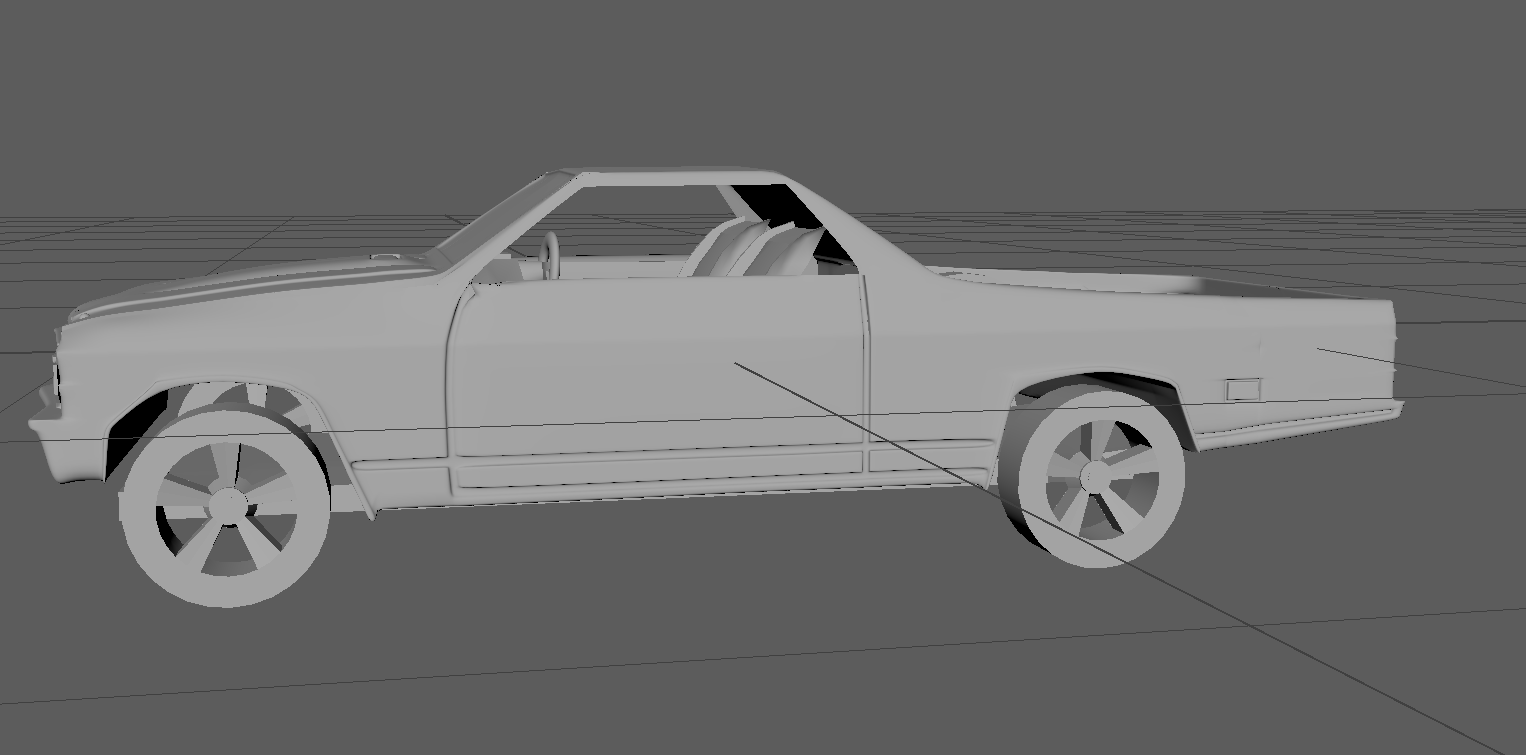 At first I spent a considerable amount of time vacillating between whether or not to use reference images of the car that I had taken with my phone(not taken with great expertise) or to find a more precise one of the blueprints online. I was able to find some reference images for the exact same car model (El Camino ‘79) online. But these reference images weren’t of the greatest clarity but I still decided to proceed with these since I trusted these more than my amateur photography skills especially when it is required to take photos with the same scale. However, I took a conscious decision to go with these images which looked had slight variations of the model car. I decided to adjust these variations later once the general model was built. I made use of the front view, top view and side view images of a ‘79 El Camino. I did make sure using Adobe Photoshop to see if the reference images indeed were indeed orthographically valid and to scale. I imported these images in to Maya, placed them at sufficient distances from each other to avoid congestion. Apart from the model of the toy car pictures above, I used reference images that I have provided below.