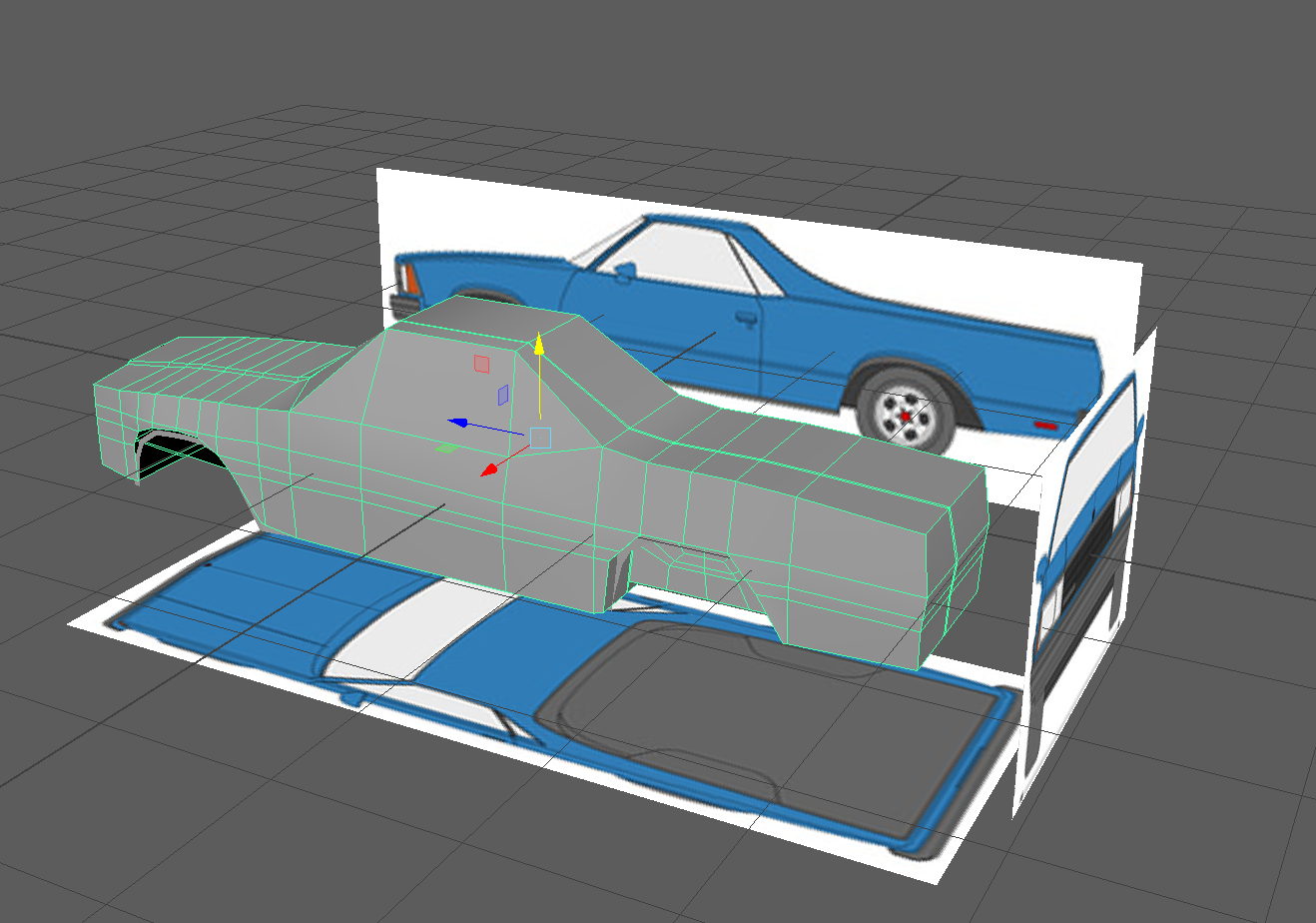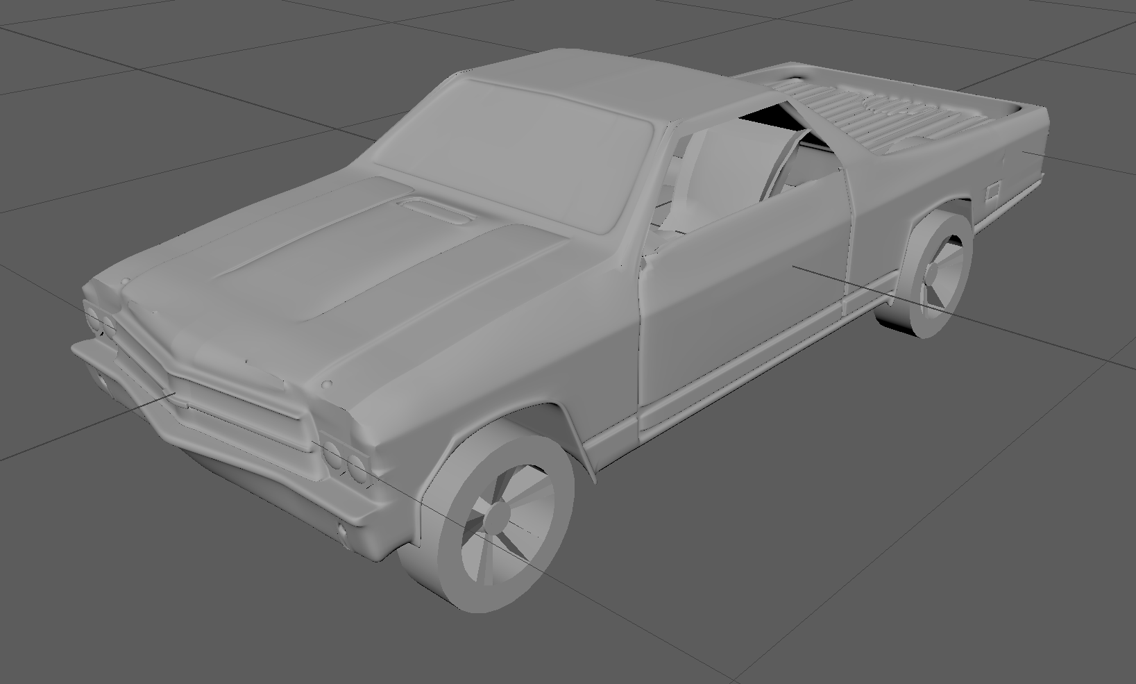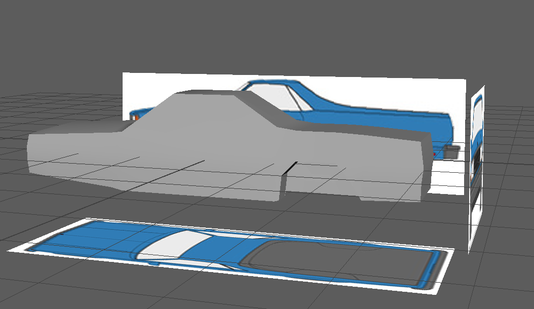 At first I spent a considerable amount of time vacillating between whether or not to use reference images of the car that I had taken with my phone(not taken with great expertise) or to find a more precise one of the blueprints online. I was able to find some reference images for the exact same car model (El Camino ‘79) online. But these reference images weren’t of the greatest clarity but I still decided to proceed with these since I trusted these more than my amateur photography skills especially when it is required to take photos with the same scale. However, I took a conscious decision to go with these images which looked had slight variations of the model car. I decided to adjust these variations later once the general model was built. I made use of the front view, top view and side view images of a ‘79 El Camino. I did make sure using Adobe Photoshop to see if the reference images indeed were indeed orthographically valid and to scale. I imported these images in to Maya, placed them at sufficient distances from each other to avoid congestion. Apart from the model of the toy car pictures above, I used reference images that I have provided below.