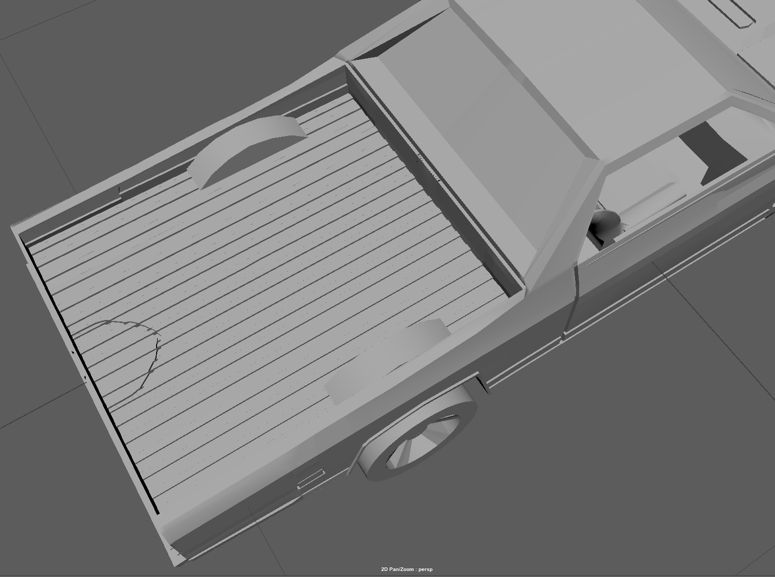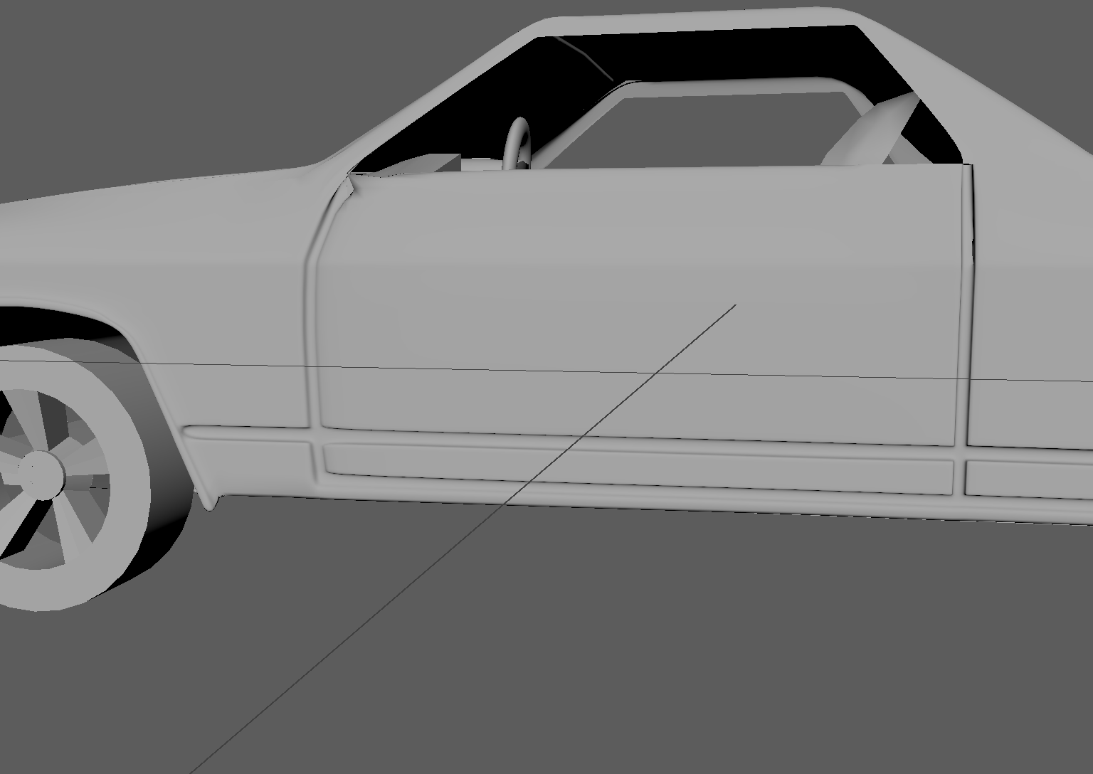 I deleted faces to form the window on the side. To model the door dent, I added edge loops and moved around the vertices to match the door curve as seen in the model. I also did this to match the dent along the side frame that clears the ground. Notice how the frame isn’t exactly parallel to the ground. Once vertices were moved around to match the frame, I added extra edge loops around and extruded the faces that would define my curve inwards to give it a dent like appearance. In this step I found modeling the door frame and managing the vertices in an around the entire area to be a herculean task. I learned later that every extrusion even if not used, or pressed by mistake creates vertices and faces sometimes which ruins the topology of the model in a very pernicious way. This is because the extra faces, edges and vertices created are masked by other faces, edges and vertices which aren’t visible directly even if on wireframe mode. I also made of the split polygon tool to add more edges to faces whenever necessary