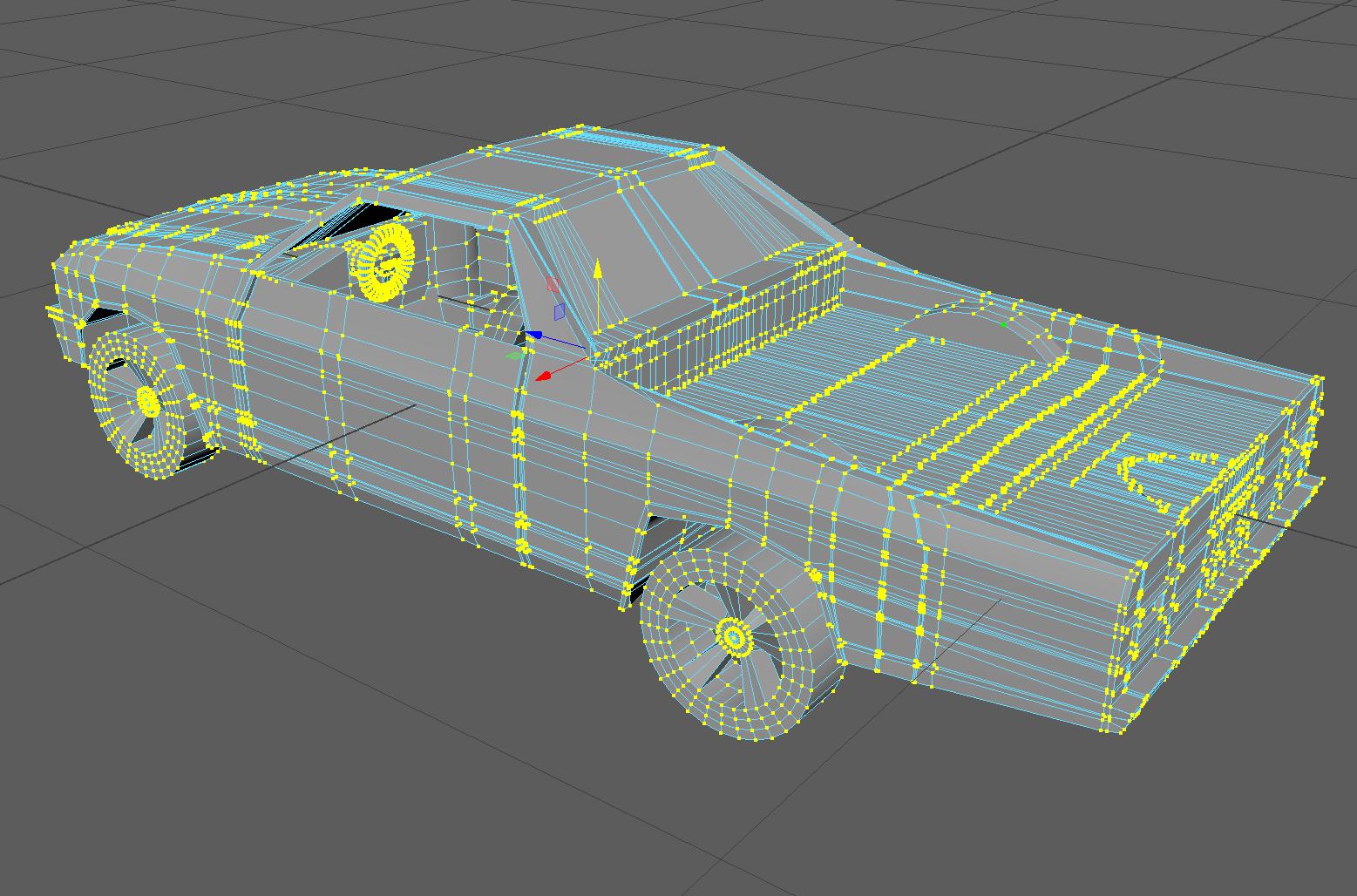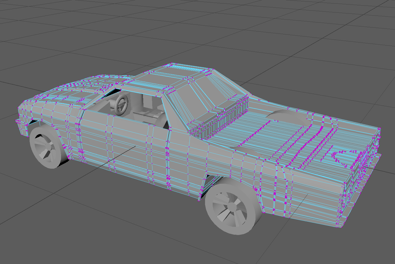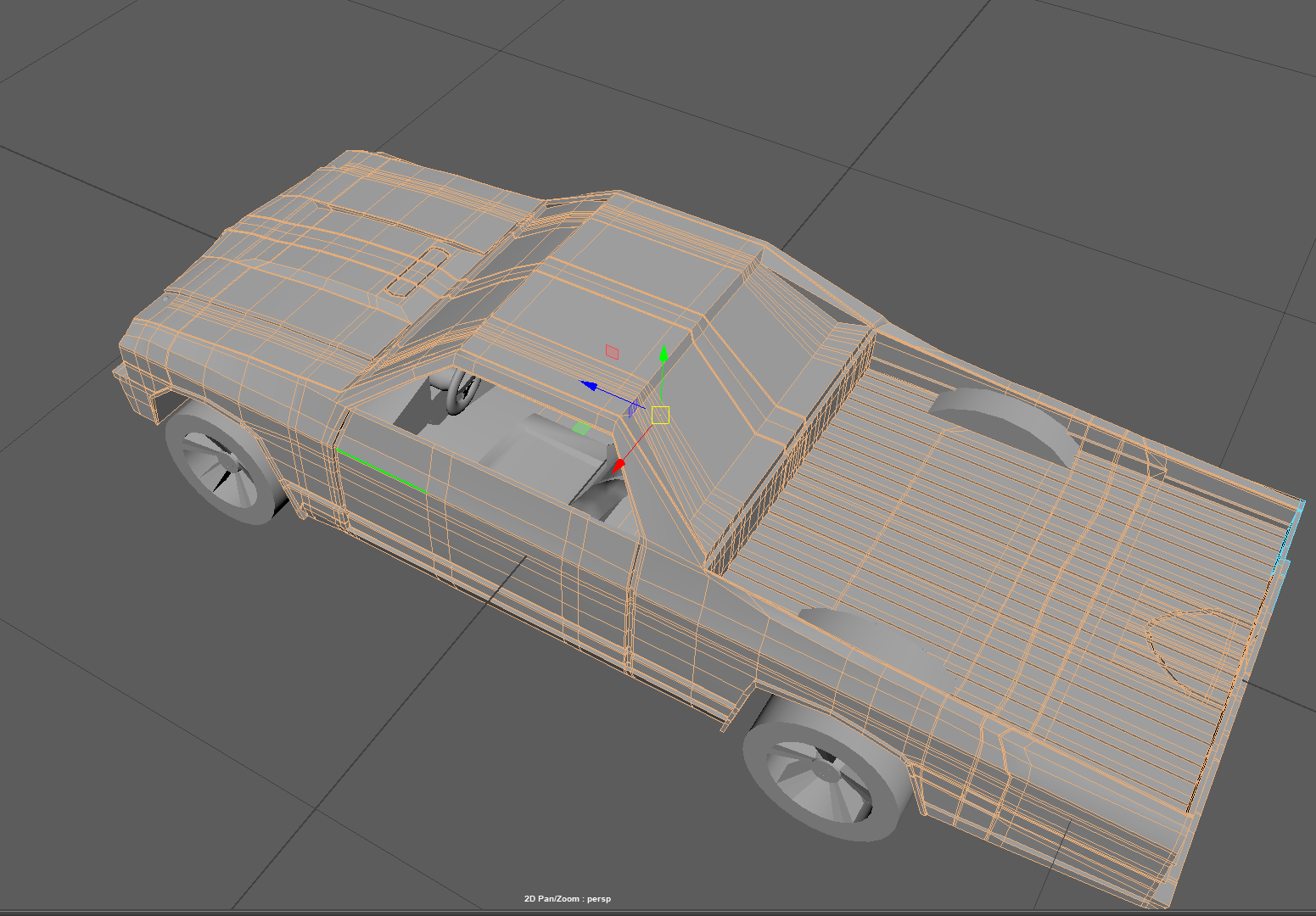 I would describe this part as the most difficult part of the car I had faced until then. I needed to accurately define the wheel wells for both the front and the back wheels of the car. While this may seem like a simple task, I found that simply adding edges by using the ‘multicut’ tool and the ‘insert edge loop’ exacerbated the topology of my model. So I needed to really visualize the model of the car and Added as few edge loops as possible to let me represent the wheel well curve in basic form. Had I used more edges here, I would have been able to give the curves some extra profile. But my cost to benefit ratio analysis of this told me otherwise. Notice that the wheel well curves in the front and the back aren’t exactly the same which is why it took much more effort to understand this not very easily perceivable difference in itself. I extrude the wheel well ridges to give it that extra thickness and beveled like appearance that can be seen in the toy model if looked at carefully.